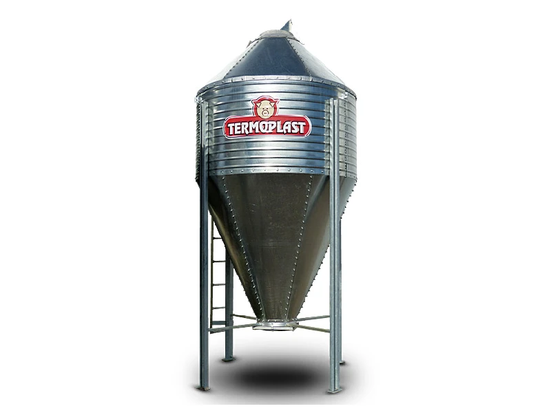 Excelente flujo interior y caída de alimento proporcionados por la angulatura de cono especialmente diseñada. Puerta hombre con ingreso desde el suelo para facilitar la limpieza del silo. Escalera de acceso hasta la tapa superior con protección hombre opcional.Tapa en el extremo superior para llenado. Capacidad aproximada: 3000kg. Agulatura de cono: 70°