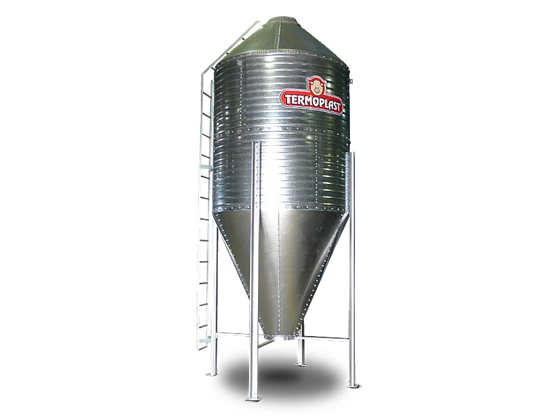 Excelente flujo interior y caída de alimento proporcionados por la angulatura de cono especialmente diseñada. Puerta hombre con ingreso desde el suelo para facilitar la limpieza del silo. Escalera de acceso hasta la tapa superior con protección hombre opcional.Tapa en el extremo superior para llenado. Capacidad aproximdada: 4500kg. Angulatura de cono 70°
